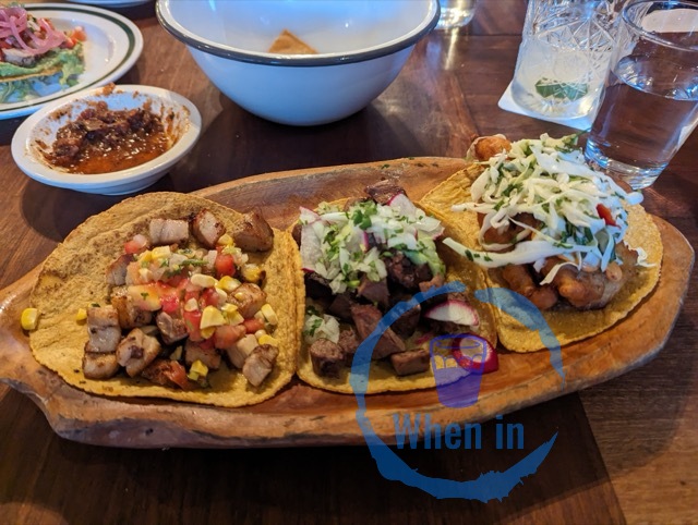 We’ve been to Gracia for brunch, lunch, and dinner. The salsa sampler is a great start to any meal and let’s you try three of their different homemade salsas along with their delicious tortilla chips. While Sam is partial to the tostada, I rarely order anything but the tacos. Beef tongue, or lengua, isn’t on every menu and tongue on their lengua tacos is some of the most tender and delicious I’ve ever had. The pescado taco has a nice balance of crispiness and tangy sauce that always keeps it on the list if I’m looking for more than lengua. More often than not I’ll get two tacos (lengua and pescado) though they have a pork belly special taco that is worth trying. Additionally, their house margarita is always delicious. A normal meal for us is the salsa sampler, a couple or few tacos each, and a few of the house margaritas.